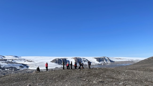 Eventually we reached the last ridge and another glacially carved valley opened up. The glacier spilling out in front of us had taken the shape of a Piedmont glacier. Svalbard is like a glaciological textbook, right there in front of us.