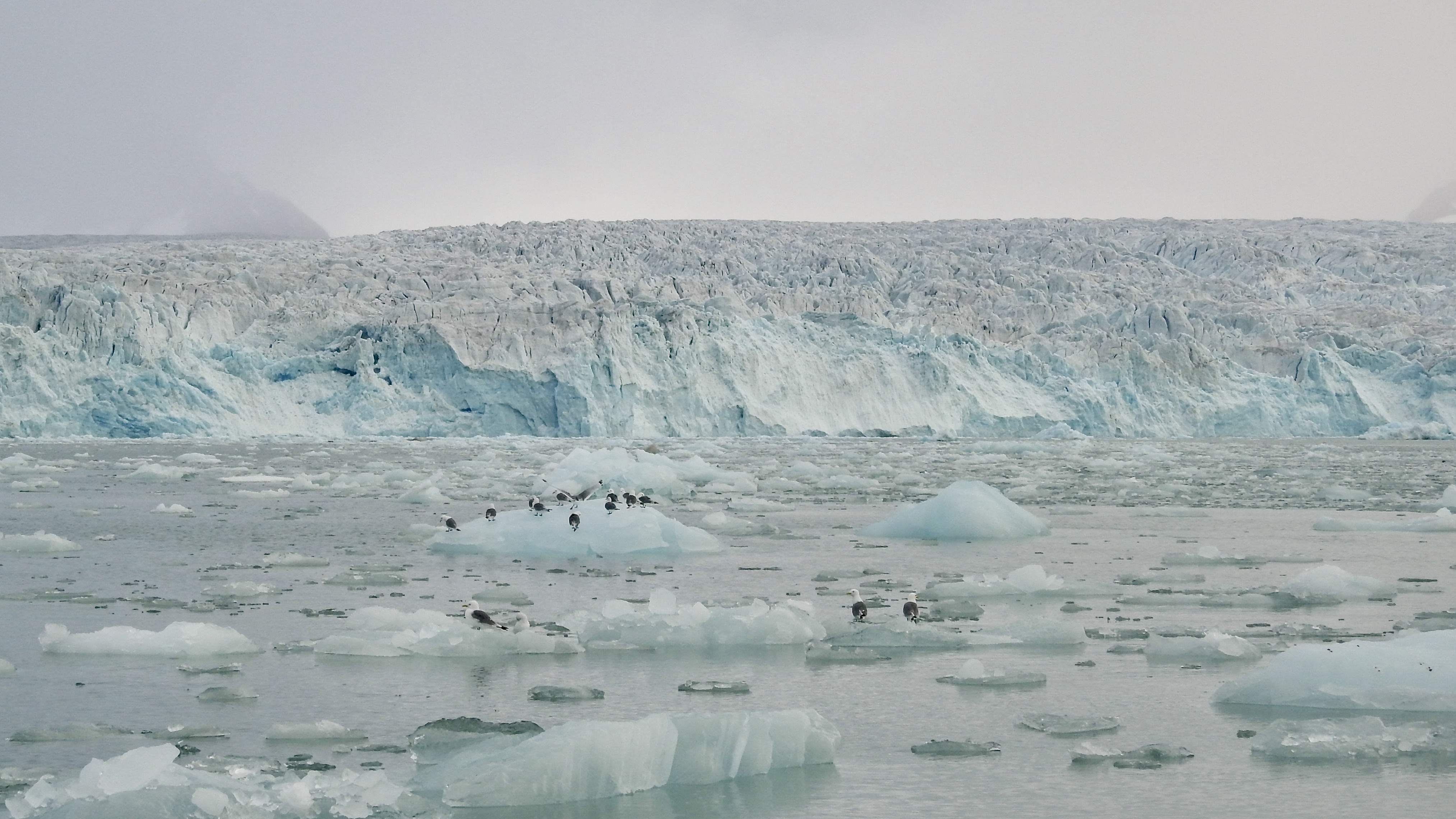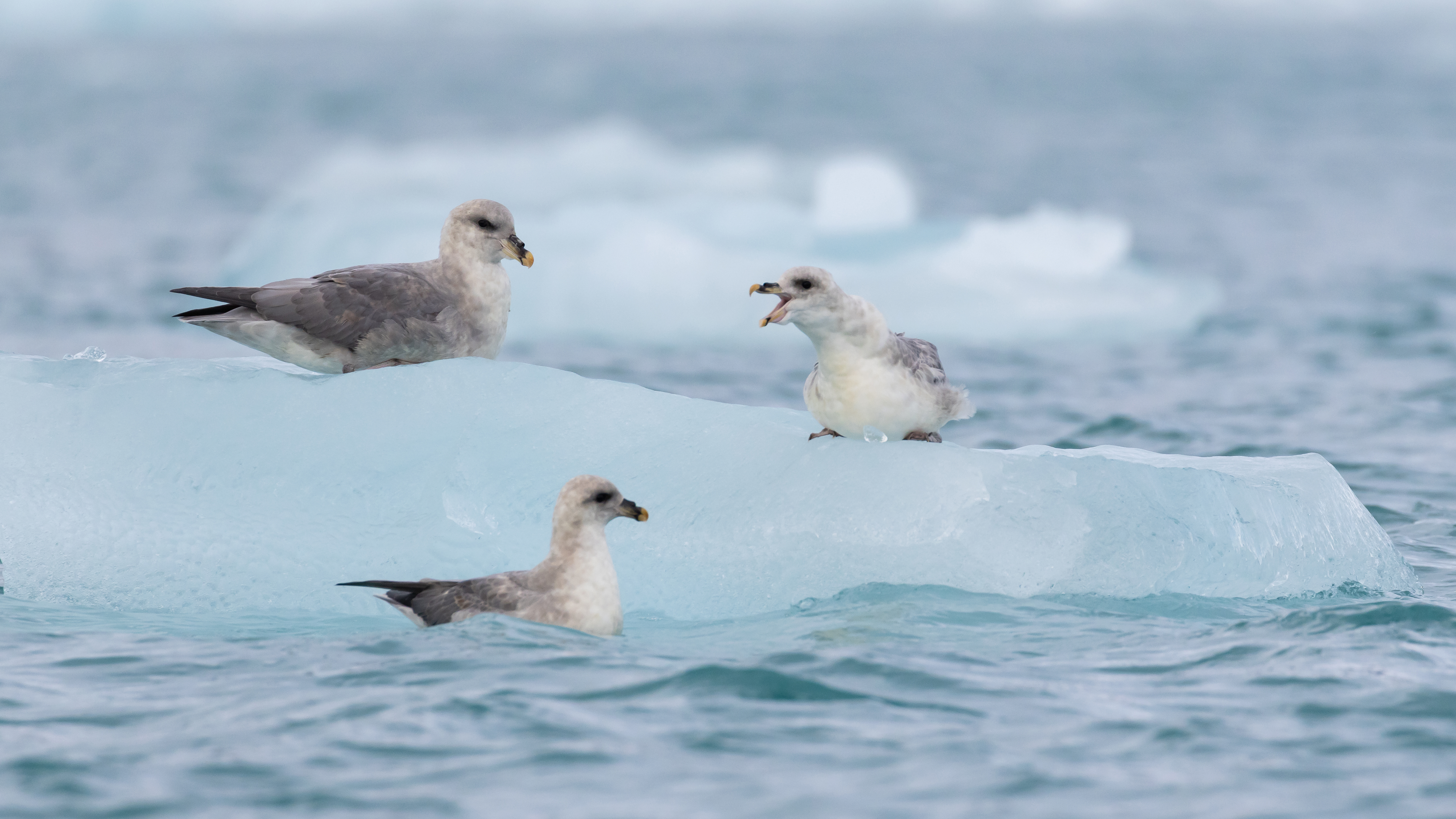 As we glided through the icy waters, we saw numerous Kittiwakes and Northern Fulmars which soared overhead, and to our delight, even an elusive Ivory Gull made an appearance. While we marveled at the many hues and intricate forms of the icebergs and floes, a massive calving from the glacier sent thunderous echoes across the bay.