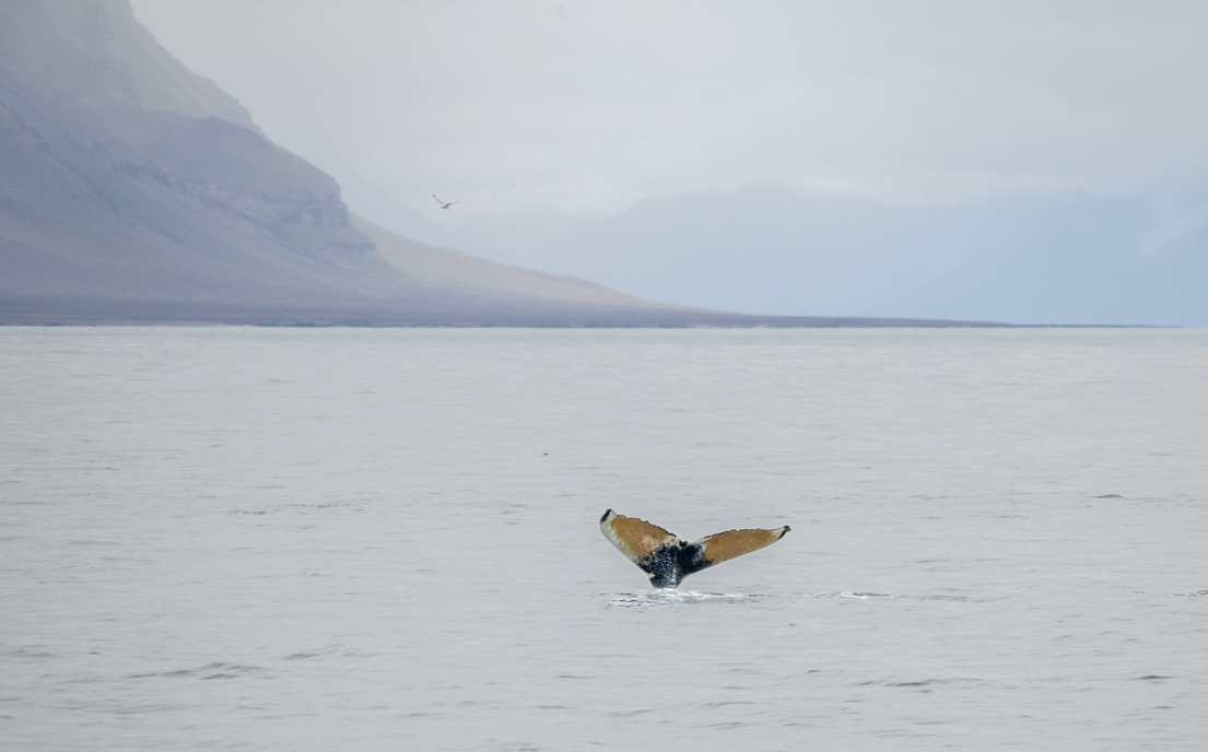 More polar bears were found in other places but we could not find any whales. The very last day on our way back to Longyearbyen, just outside the mouth of Isfjorden we suddenly discovered blows at the horizon. All on deck!! Soon we were surrounded by fin whales, humpback whales, and minky whales! They were everywhere and a quick look at the eco sounder revealed large schools of small fish, which explained the abundance of whales in the area. After several wonderful hours with over a hundred whales, we headed into Isfjorden and Longyearbyen, but before reaching our destination we met a large group of beluga whales… What a trip!