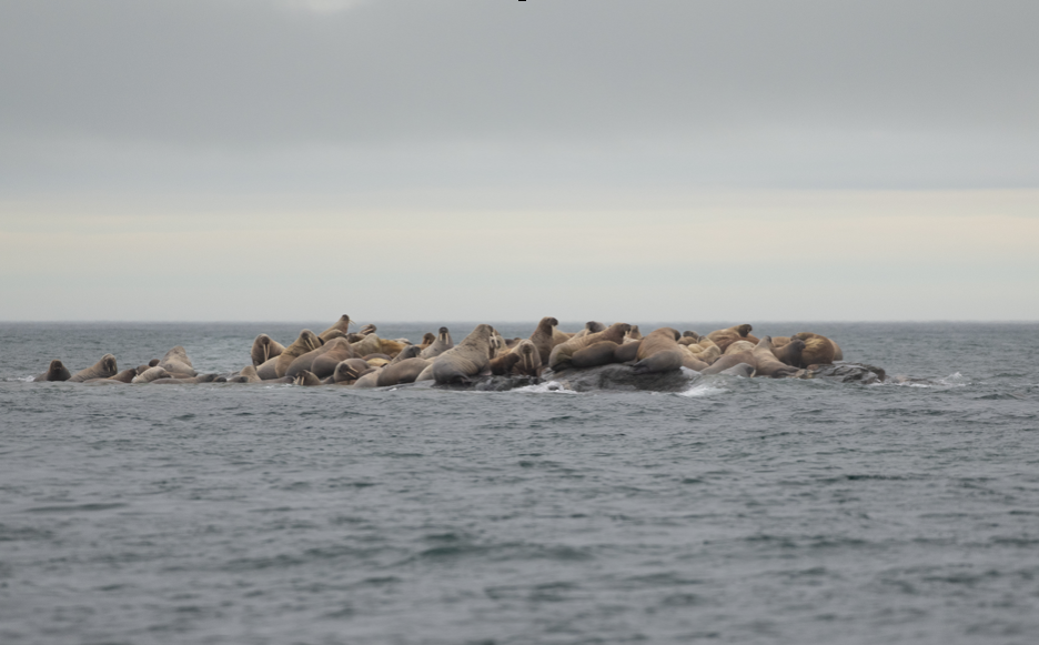 In Lomfjorden we were lucky enough to see seven polar bears in one place, which is very unusual! The Polar bears had all followed the smell of a whale carcass on the beach. When we arrived a female polar bear with two cubs was standing on the beach. Further in another female was breastfeeding her cub and up on a slope two adult bears were taking a nap.