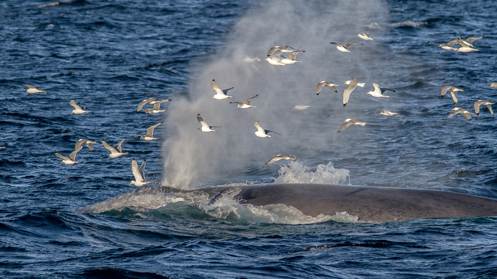 After lunch, we made an excursion with our Zodiac in Recherchefjorden, and during the night, on our way north, we were awakened by David who had seen whales in front of us. It turned out to be both fin whales and blue whales, and it was an incredible experience to see these huge animals that come to Svalbard to eat the krill living in the waters here. What an ending of an amazing day!