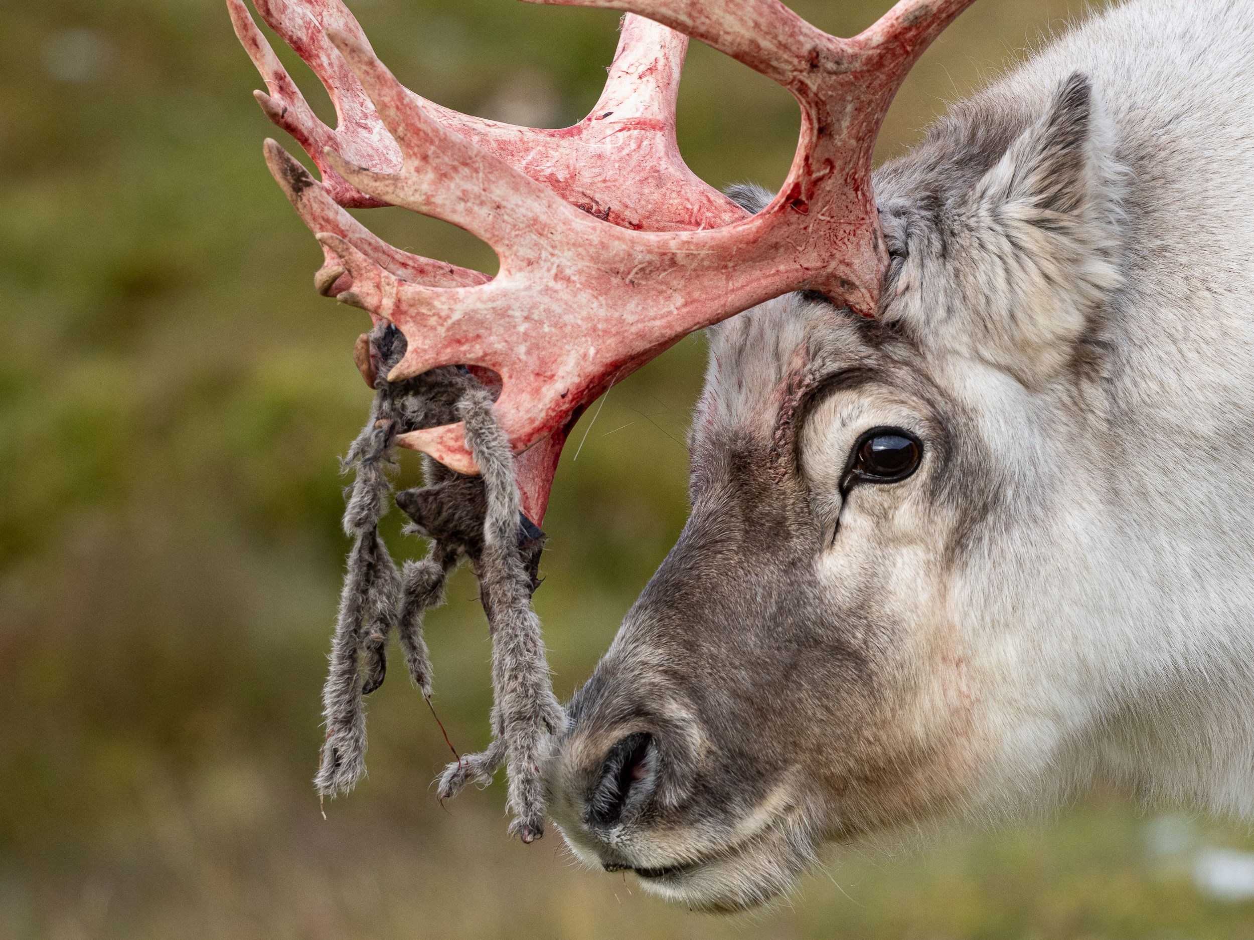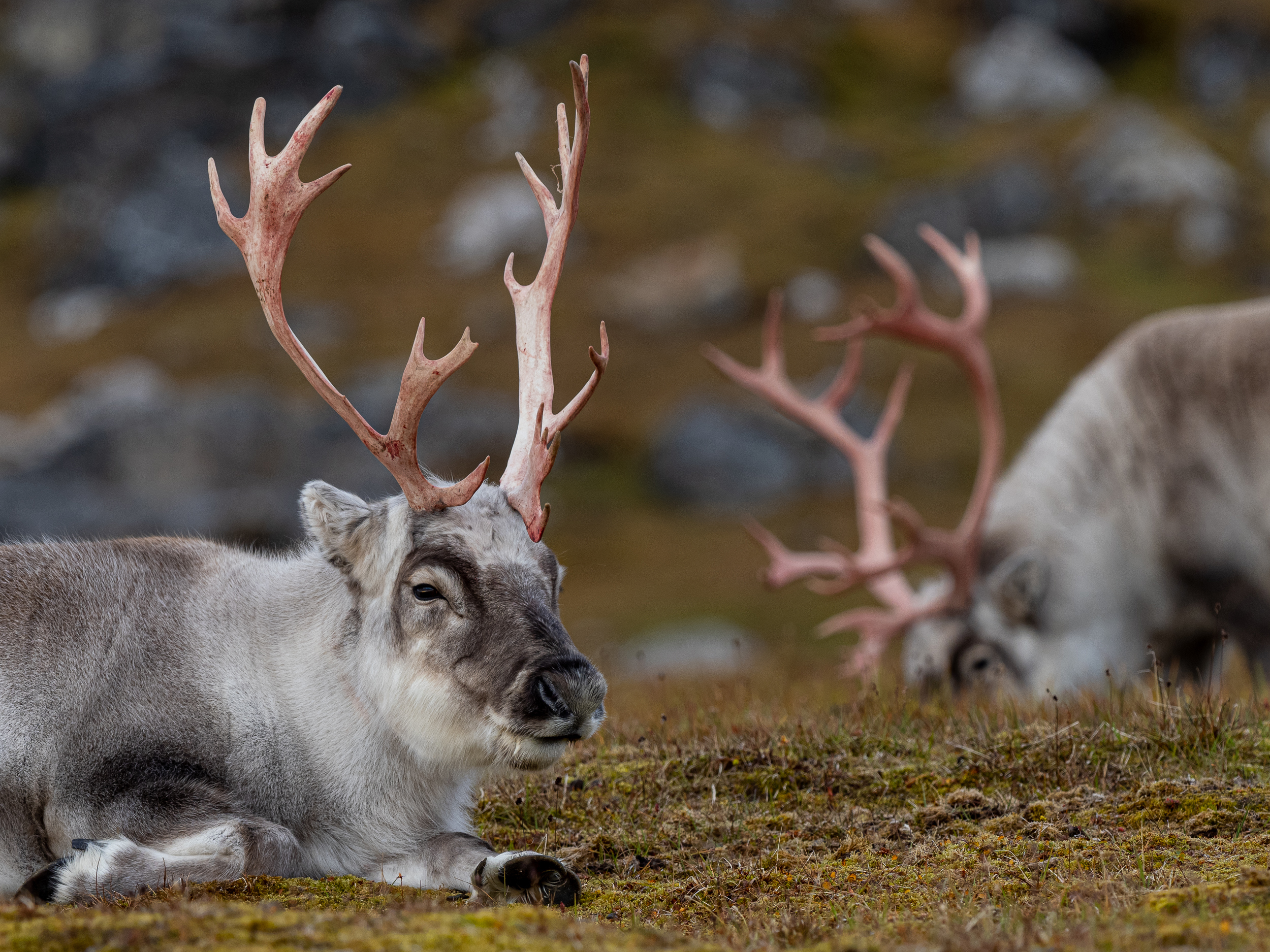 Throughout the morning we devoted ourselves to a long hike and along our way we met several Svalbard reindeer and some Arctic foxes too. The reindeers were currently sweeping their velvety bark from their antlers and they shined bright red. We also saw young male reindeers measuring their power in advance of the upcoming mating season in October.
