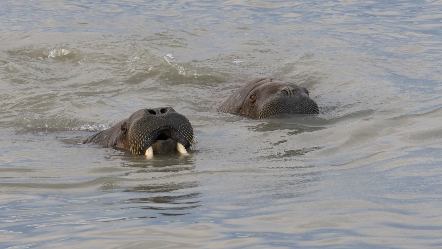 When we anchor and turn off the engine, there is complete silence. At least for a moment. Until there is a deep exhalation that makes me shiver a little. I have made eye contact with a walrus. He is curious and a little shy. When he sees my surprised face, he gets scared and dives down again. Walruses are incredibly agile in the water, in an almost acrobatic way.