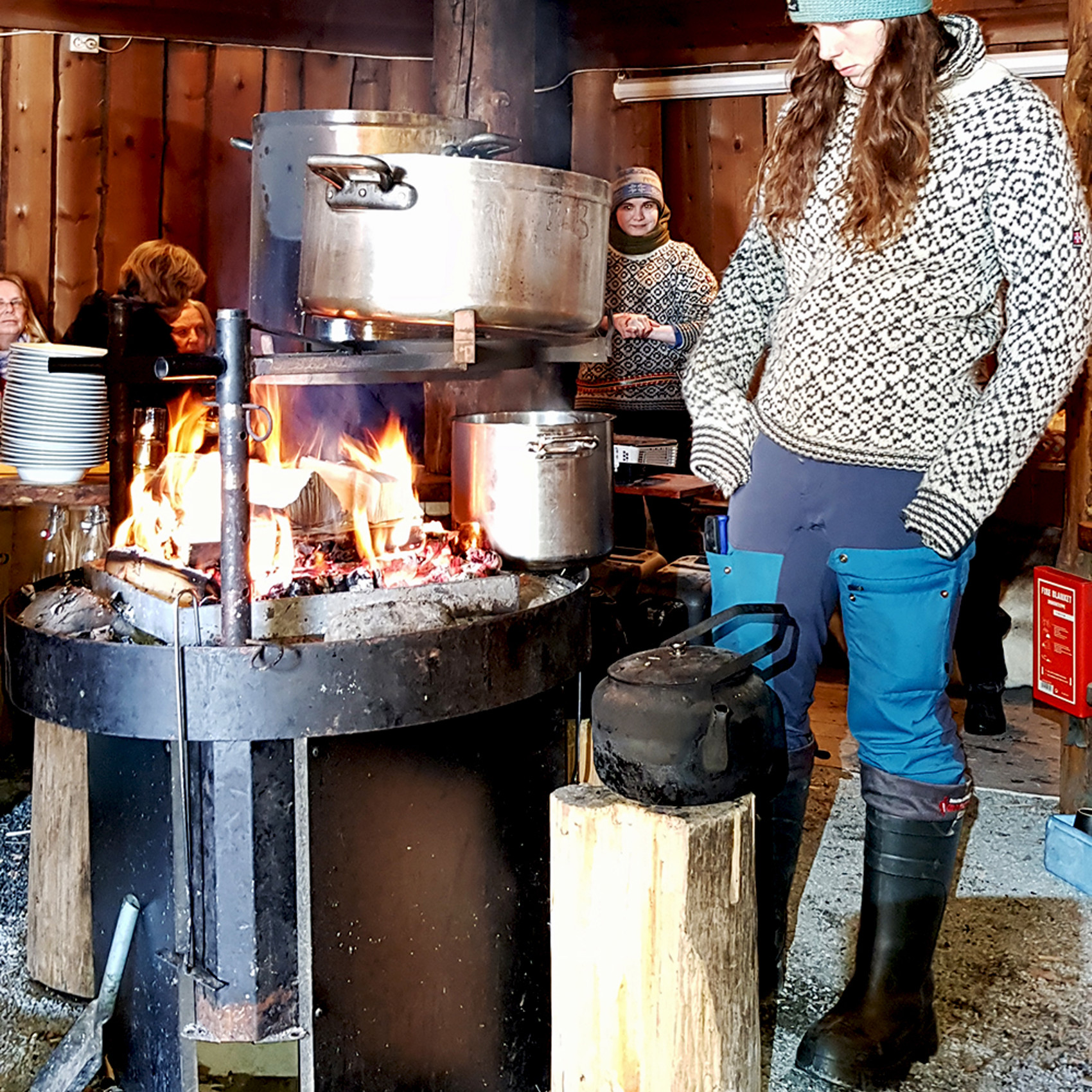 Longyearbyen welcomed us with snow covered mountains and a clear blue sky from which the sun shone high up in the sky. Before we were about to embark our expedition ship Sea Endurance, we started our Arctic experince by spending our first night in the wilderness at Camp Barent, where we were served a good dinner. After a short bus ride framed by sparkling snow and wild svalbard reindeers that were wandering around, we were welcomed by Camp Barentz' hosts. Inside the cabin a big fire burned and the food which was cooked over it smelled lovely. We sat down on reindeer fell and were served akvavit, and got to learned more about Svalbard's history. Then we ate a soup with reindeer meat and coffee with chocolate cake was served as desert while we listened to an exciting talk about the king of the Arctic - the polar bear. Full and satisfied, the bus drove us back to the hotel, and I think we all were even more excited for tomorrow's departure and our nine-day adventure on board Sea Endurance.