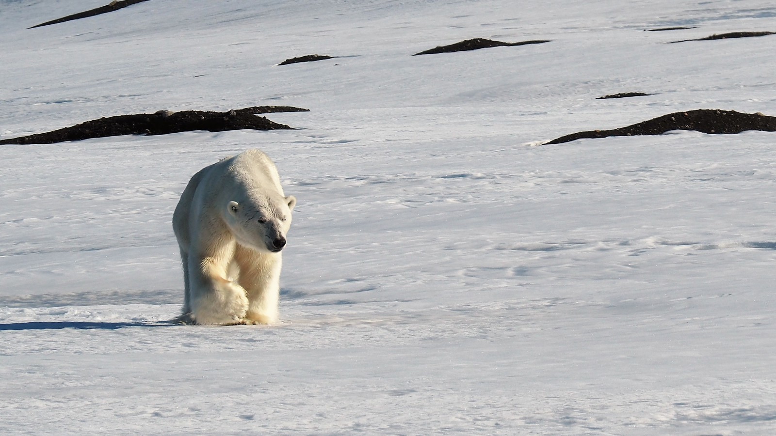 Back on the ship, we continued deeper into Hornsund during the lunch and discovered one resting polar bear on the ice and another one distinctively walking south. The walking bear went into the water and swam towards the glacier Svalisbreen, where it went up on the ice again. From the Zodiacs, we could enjoy a really nice encounter with the bear on the shoreline. The cameras were working hard, and when, all of a sudden, a herd of belugas showed up, it was almost too intense for a short while. This fantastic day was ended by a ship cruise in front of the glacier Samarinvågen, where big herds of belugas were moving around in the waters.