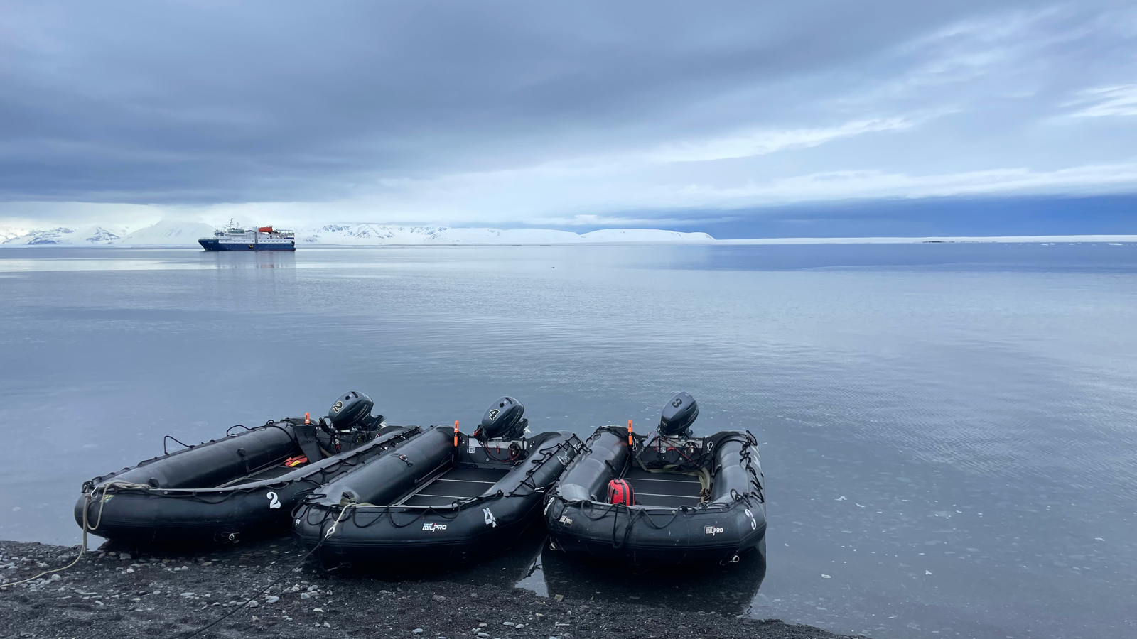 Today, in contrast to yesterday morning, we woke up to the wind tugging the windows on M/S Quest. As we ventured deeper into Liefdefjord, it stilled, and we were able to lower Zodiacs on the water. Even if the weather was grey and snowy, it turned out to be a lovely 2hr cruise along the ice edge, where we shared Svalbard stories.