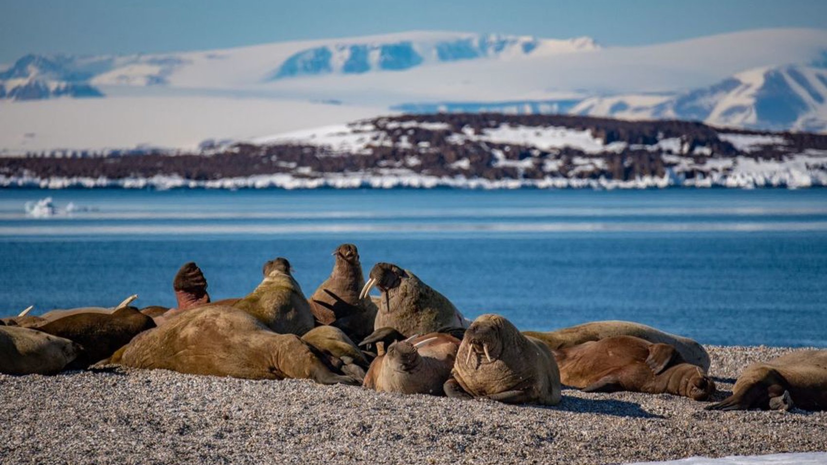 As the morning could not be better, we noticed some mothers and calves at the back, close to the water. Born in May, some of the calves were still quite small with no tusk. However, we could see multiple generations as the walruses stay with their moms for the first three years.