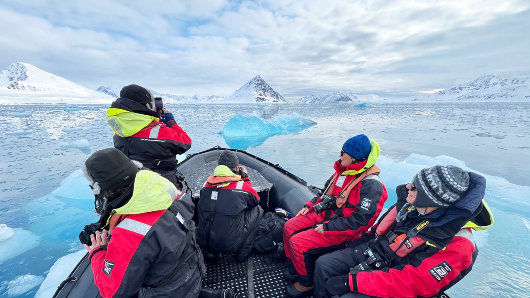 The bay was quiet, almost too quiet. Occasionally, the glacier would spring to life and pop and bang like gunshots in an empty hall, then, silence once more. The feeling was serene, everyone was silent, the suns rays beating down on us, bouncing off the white ice around us. Even our sunglasses did little to protect our eyes from the intense rays. Everyone was definitely wearing one too many layers, gloves off, hat off! But the cameras stayed fastened to their hands like fast ice clinging to the shore in a stiff breeze.