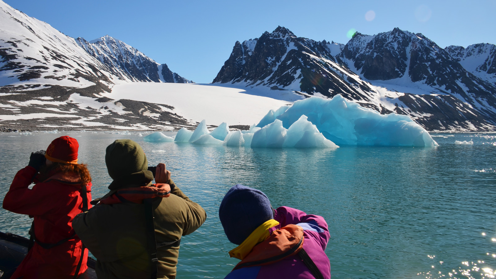 The day started with a Zodiac cruise under perfect blue skies and sunshine into the back of Magdalenefjord, experiencing brash ice and viewing ringed seals. We also took our first steps on shore on the 800-metre-high Alkekongen for views of nesting Little Auks.
