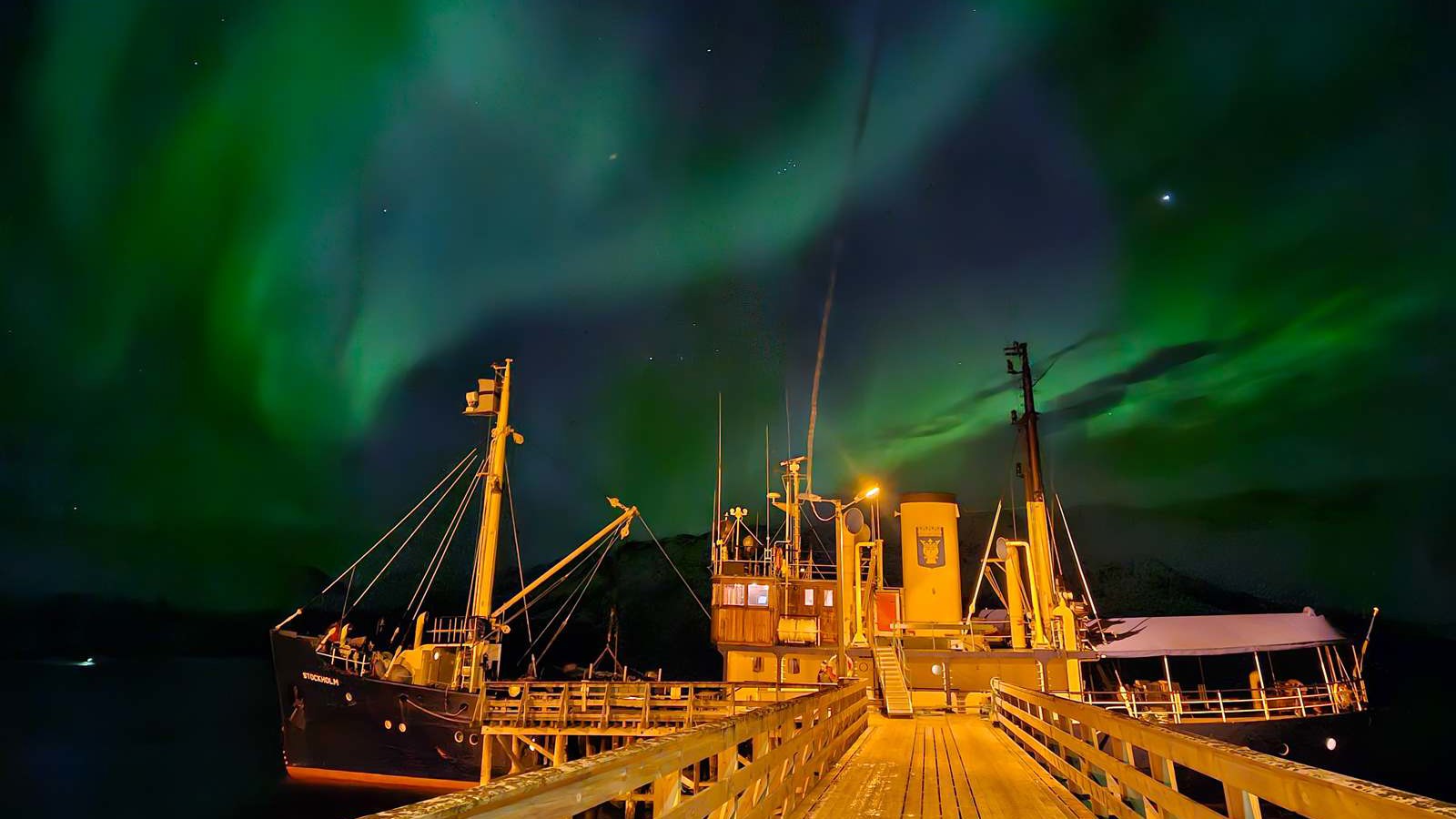 Night fell upon us. M/S Stockholm lay against the pier in the small village of Sør-Tverrfjord. After casually strolling around the quiet little settlement, guests were cozily snuggled up inside the quaint saloon on board.
