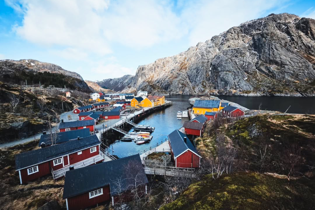 Starting in Reine, a picturesque village with a backdrop of cod drying racks and red houses.