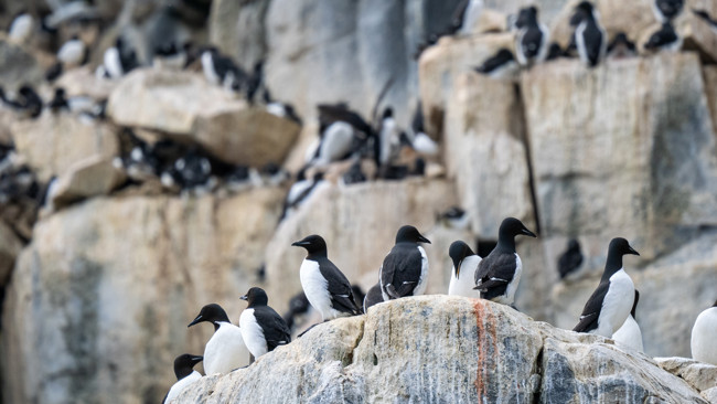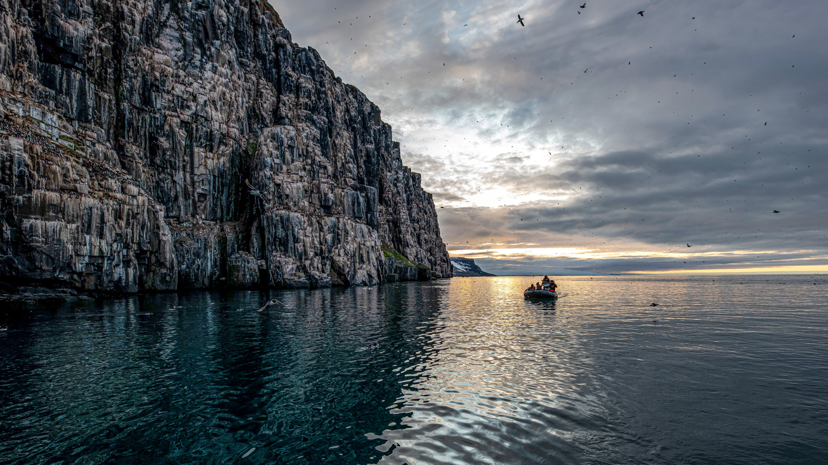 – At the end of May, life explodes. Small patches of bare ground become visible, bird cliffs become more prominent and suddenly, from a few lonely gulls and grouse, there are now millions of birds and over 40 species. It's like spring on steroids. By June, more and more bare ground becomes visible and the fjords become ice-free, allowing us to explore new places.