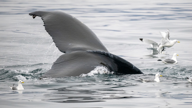 The intense summer in July is a clear testament to the fruitfulness of the sea here. The sun has been shining for months, producing millions of tonnes of plankton, attracting birds and whales from the equator to the northern latitudes. The birds bring nutrients to the bird cliffs, creating greenery and colourful flowers in the middle of the barren landscape. The bird cliffs are also a cacophony of sound.