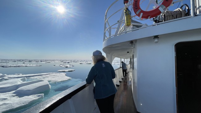 – Beyond the daily routine involving the guests, we guides spend a lot of time with the captain, discussing the itinerary for the coming days based on the weather forecast. A large part of our time is also spent looking for wildlife. Since it's daylight around the clock, except for the last few trips, it's a bit of a challenge to get enough sleep. It is so exciting that it is often difficult to go to bed.