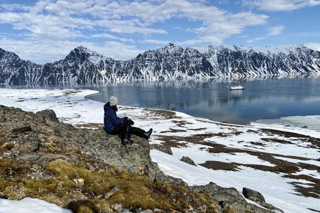Another very strong memory was when we hiked up a hill in a place called Ossian Sars. On our expedition, we were lucky enough to have a yoga instructor on board. Once at the top, the yoga instructor, Isabel asked if anyone would like to join her in a shorter meditation. Several of us sat down on the ground and with our legs crossed and our hands on our knees, Isabel led us in a calm and quiet meditation. Of course, it had to be a meditation where we didn't close our eyes, because you did not want to miss a second of the view we had in front of us. It was a very peaceful moment together.