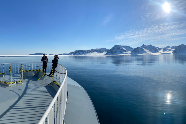 I was alone up on the deck as our ship M/S Quest slowly left Longyearbyen in Svalbard. I had just finished a video call with my family and now I watched the service on my phone decrease quickly, until the text "no service" appeared. I put the phone in my pocket and looked up at the most incredible view. Longyearbyen had just disappeared behind us, the rays from the sun were finding their way through the clouds to illuminate a few snow-capped mountains on the horizon and suddenly there it was, the silence!