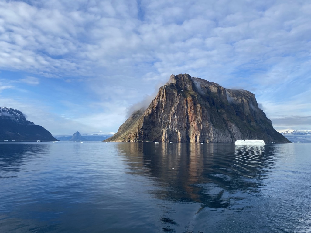As spring turns into summer, the unglaciated costal landscape turns green and especially in the south low shrub bush and Arctic flowers bloom. Temperatures are a comfortable 10-15C and days are long with usually stable calm and clear water. With the warming temperatures come increased calving of icebergs and fjords such as Sermilik fjords in the east and Kangia in the west, are littered with icebergs in all different shapes and sizes.