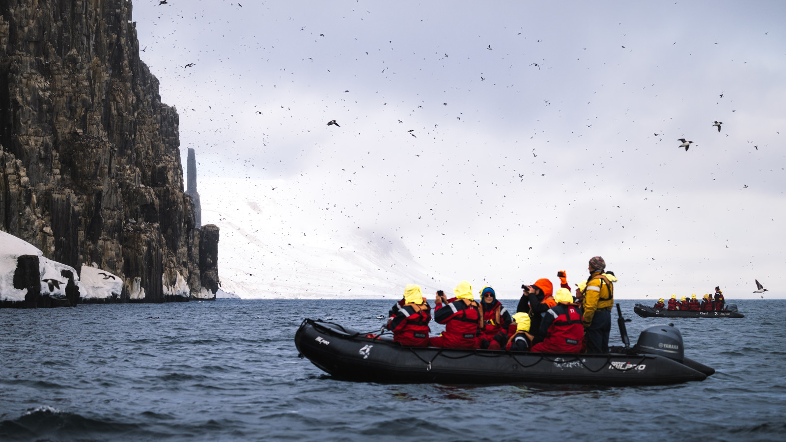 Ice conditions permitting, we enter the Hinlopen Strait. Here we find Alkefjellet, an impressive basalt cliff that is home to an estimated 200 000 Brünnich’s guillemots. We may also continue into the beautiful bay of Palanderbukta on Nordaustlandet.