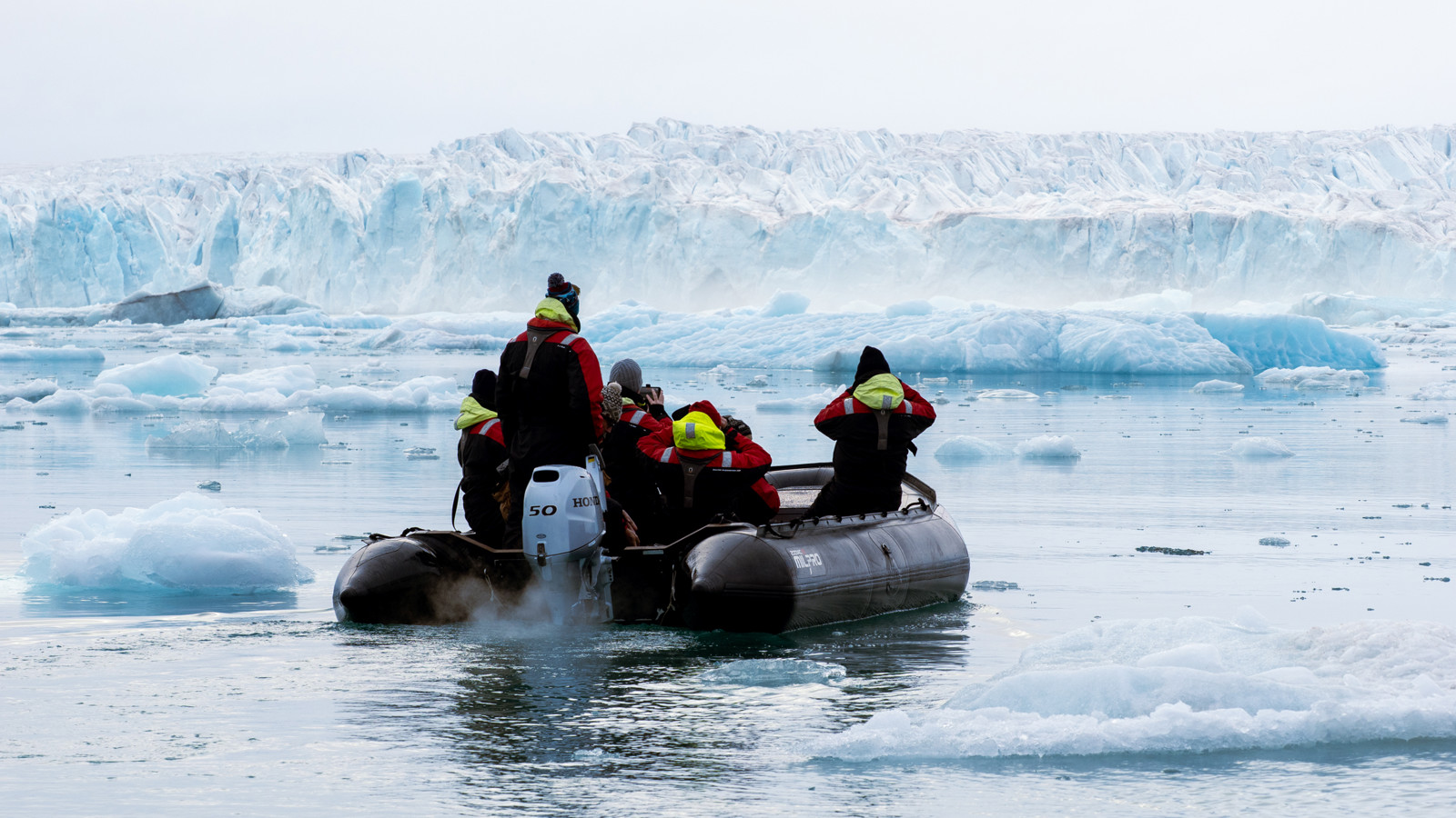 The island of Nordaustlandet is covered by a huge ice cap and has fascinated naturalists and historians alike. Here the giant glacier Bråsvellbreen stretches for 180 kilometres! The 15-20 metre high ice edge is punctuated by hundreds of by hundreds of waterfalls.
