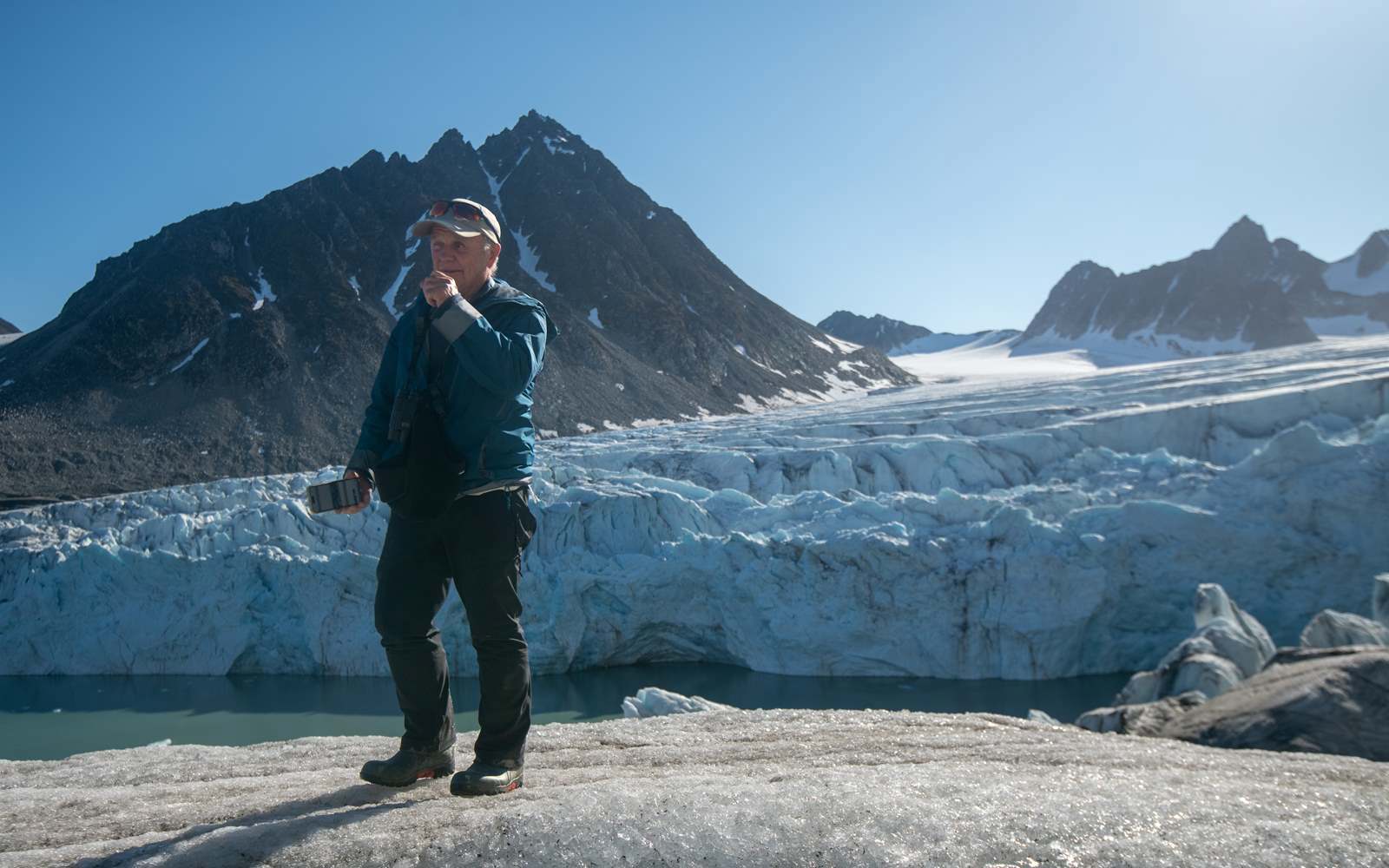 During several expeditions on Svalbard, we have had the honour of having the Scottish, award-winning photographer and nature cameraman, Doug Allan as a special lecturer and inspirer. Doug Allan is one of the world’s best known and respected cameramen, whose love affair with ice has lasted over forty years.