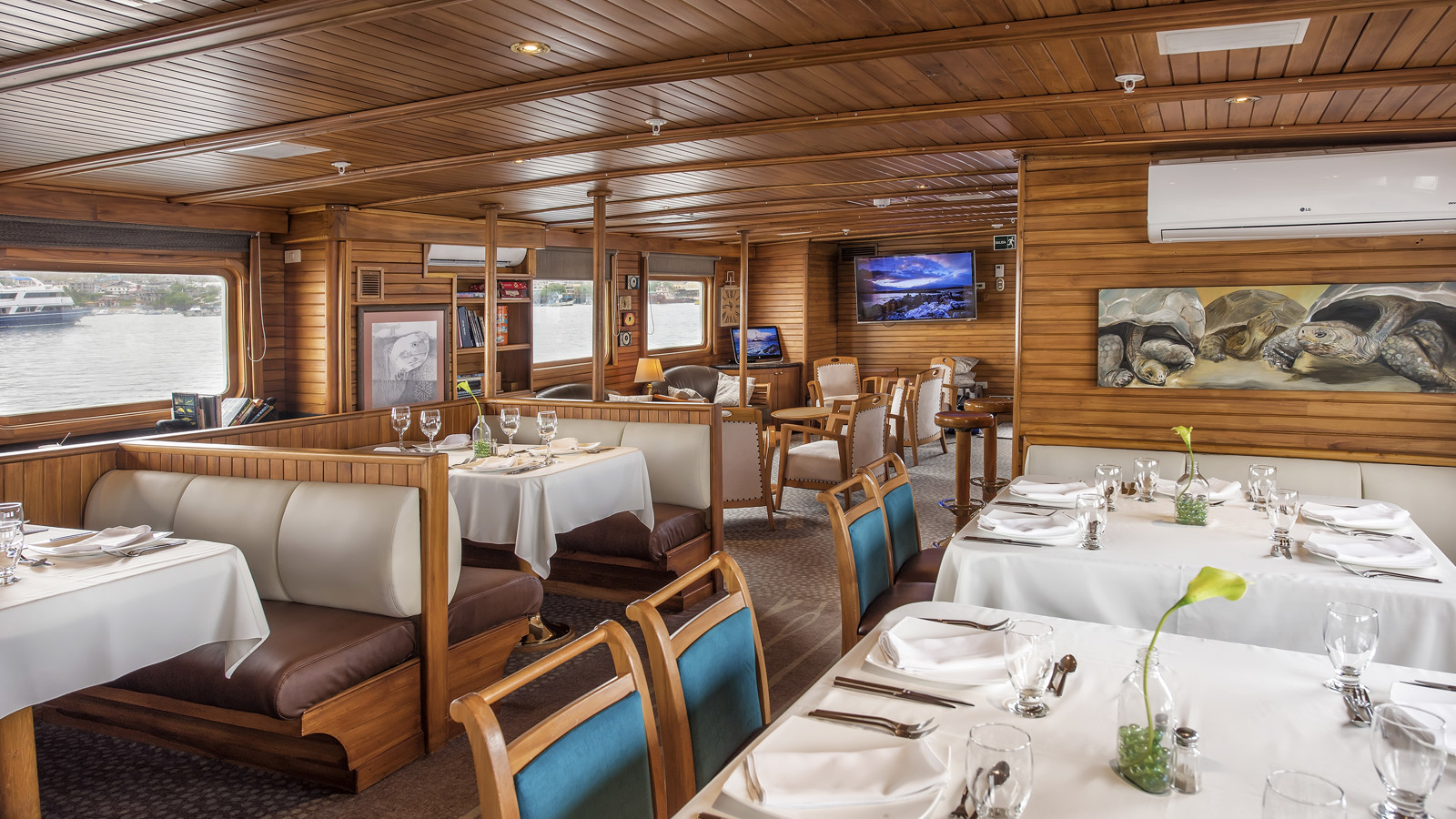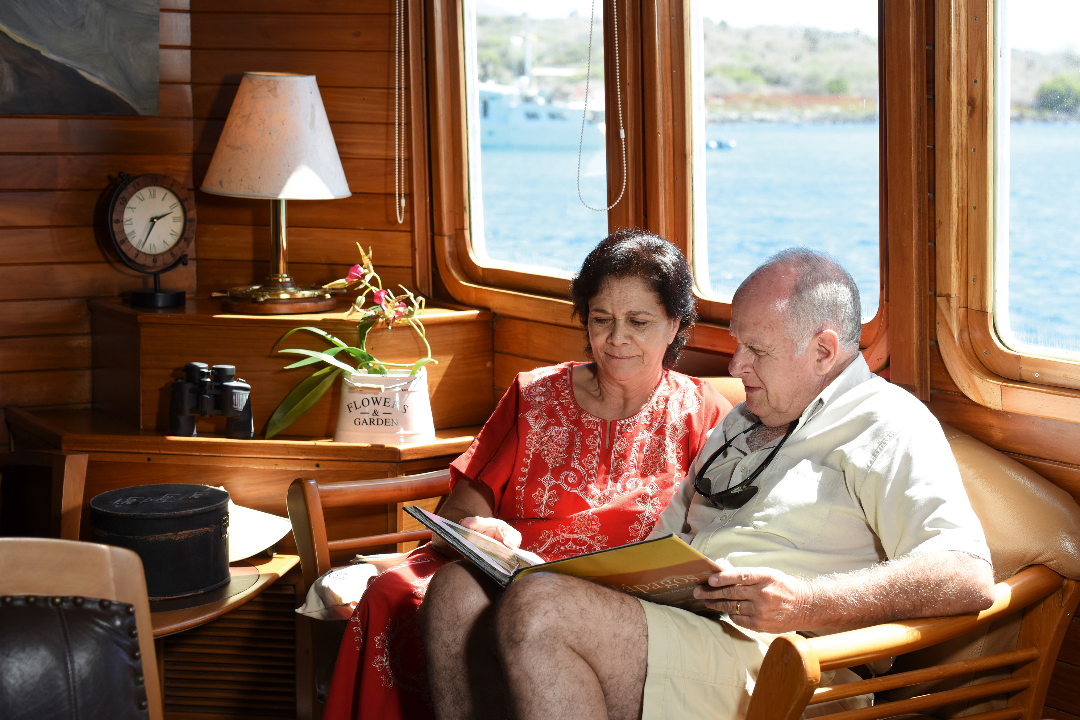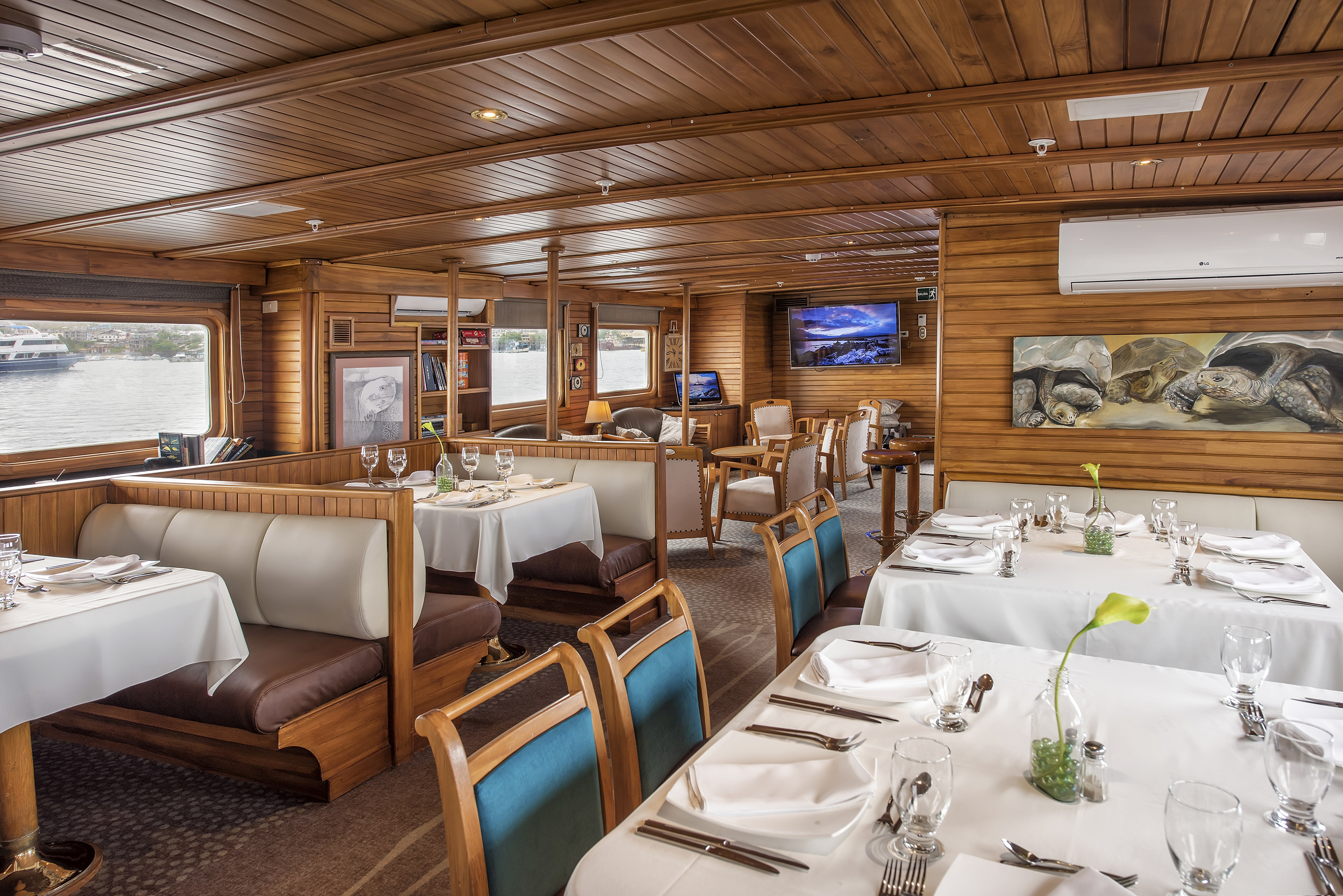 1Our expedition yacht was refurbished in 2018 and the comfortable cabins accommodate 19 passengers. The yacht has the latest navigation equipment and is decorated in classic maritime style with teak and brass.