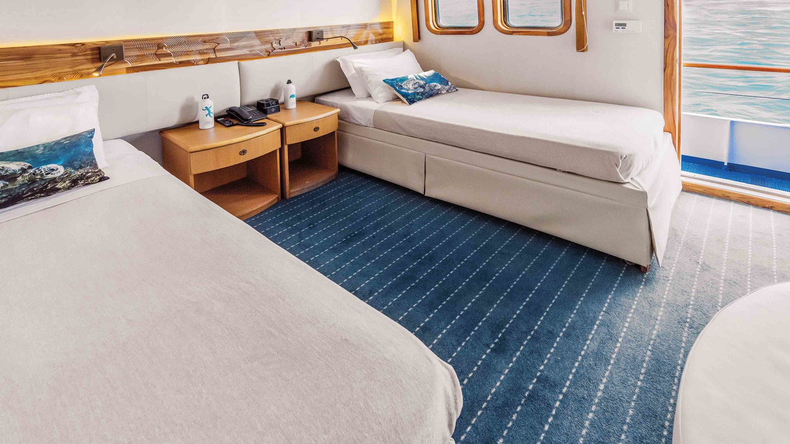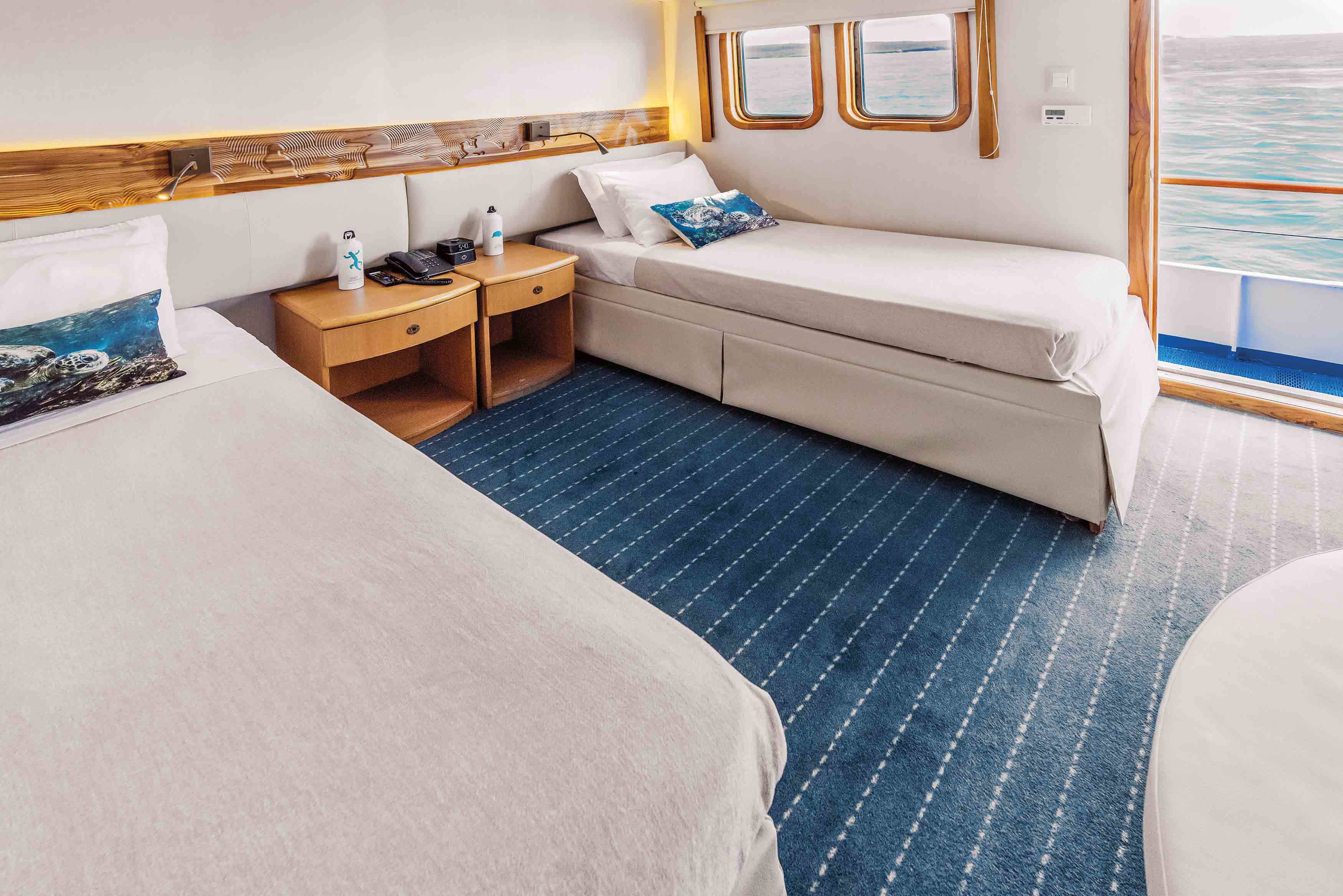 All cabins are air-conditioned, have private shower/WC and windows/port holes. Facilities on board include a comfortable lounge, a dining room, a well-stocked bar, three sun decks and a plunge pool. The bridge is open to visitors at all times.