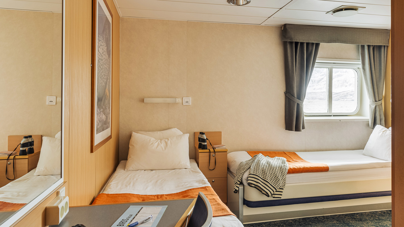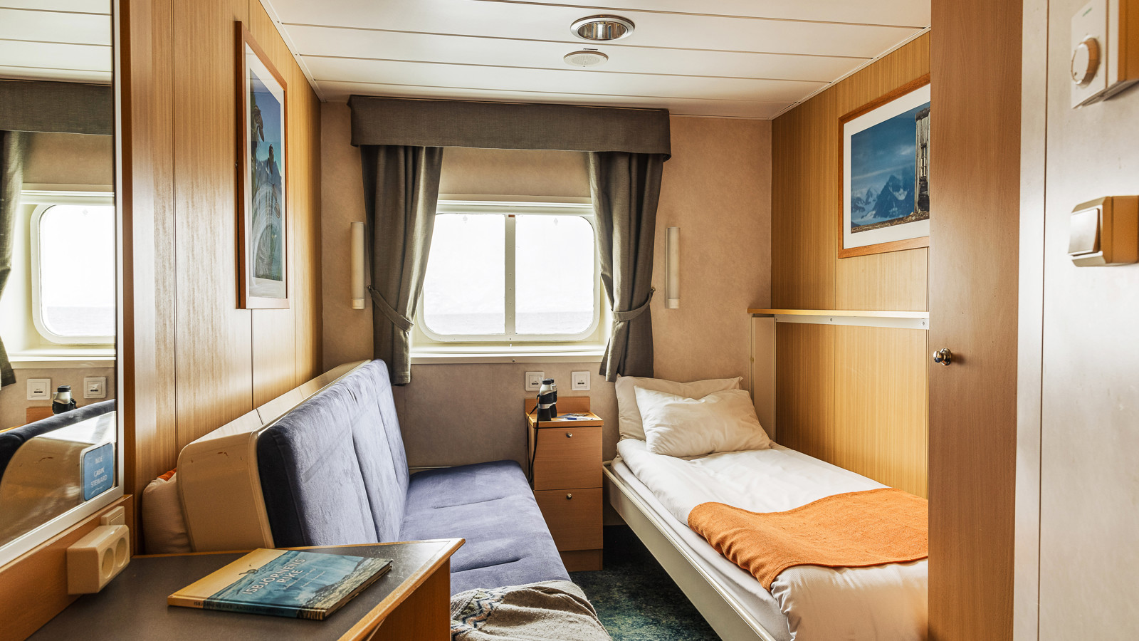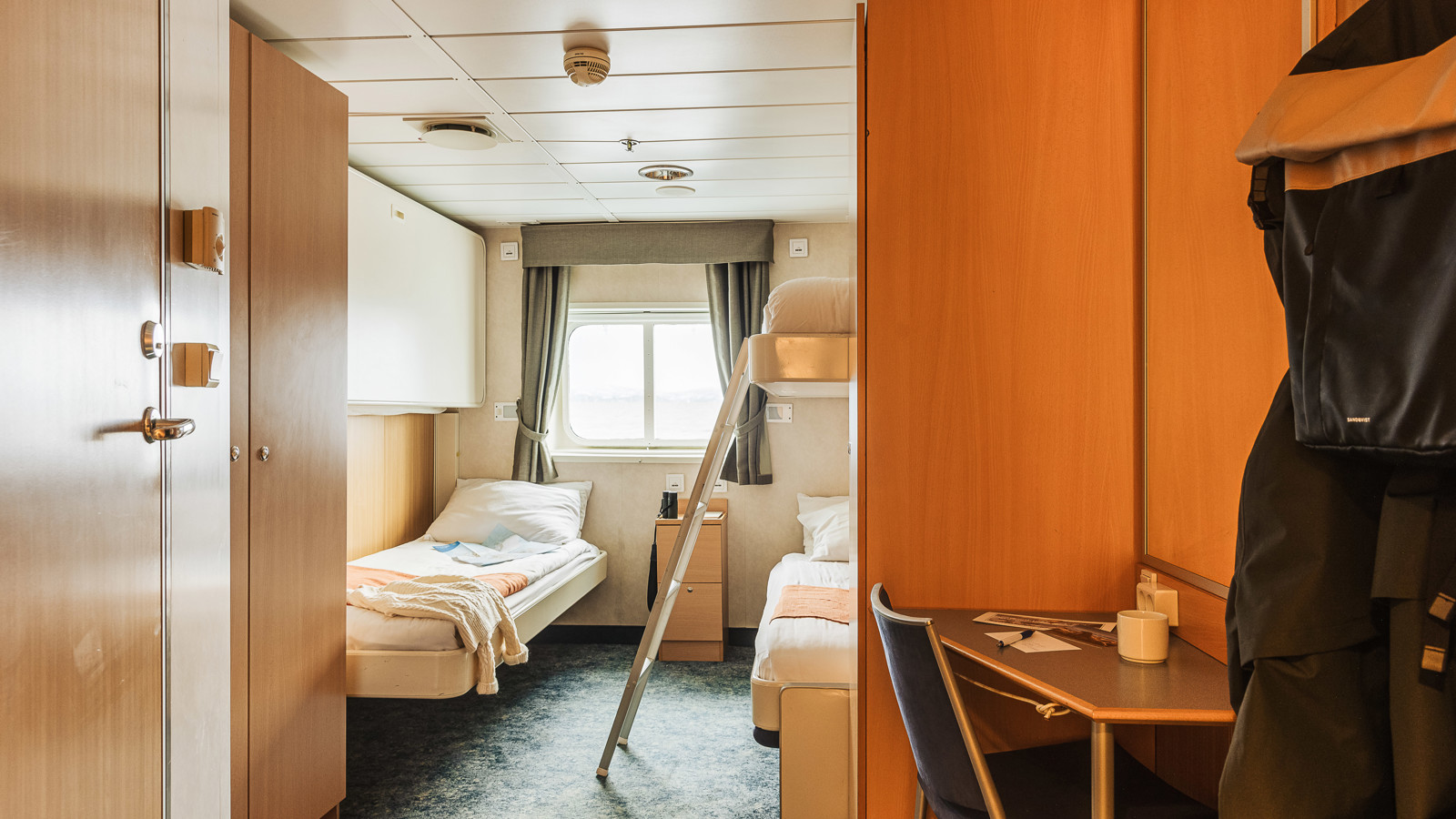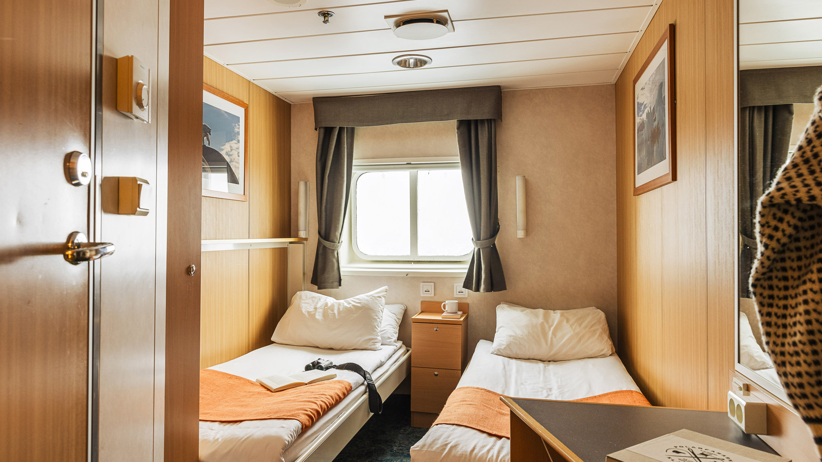We always offer the possibility to share a cabin on board M/S Quest as many of our guests are travelling on their own. The cabins are divided into women's and men's cabins.