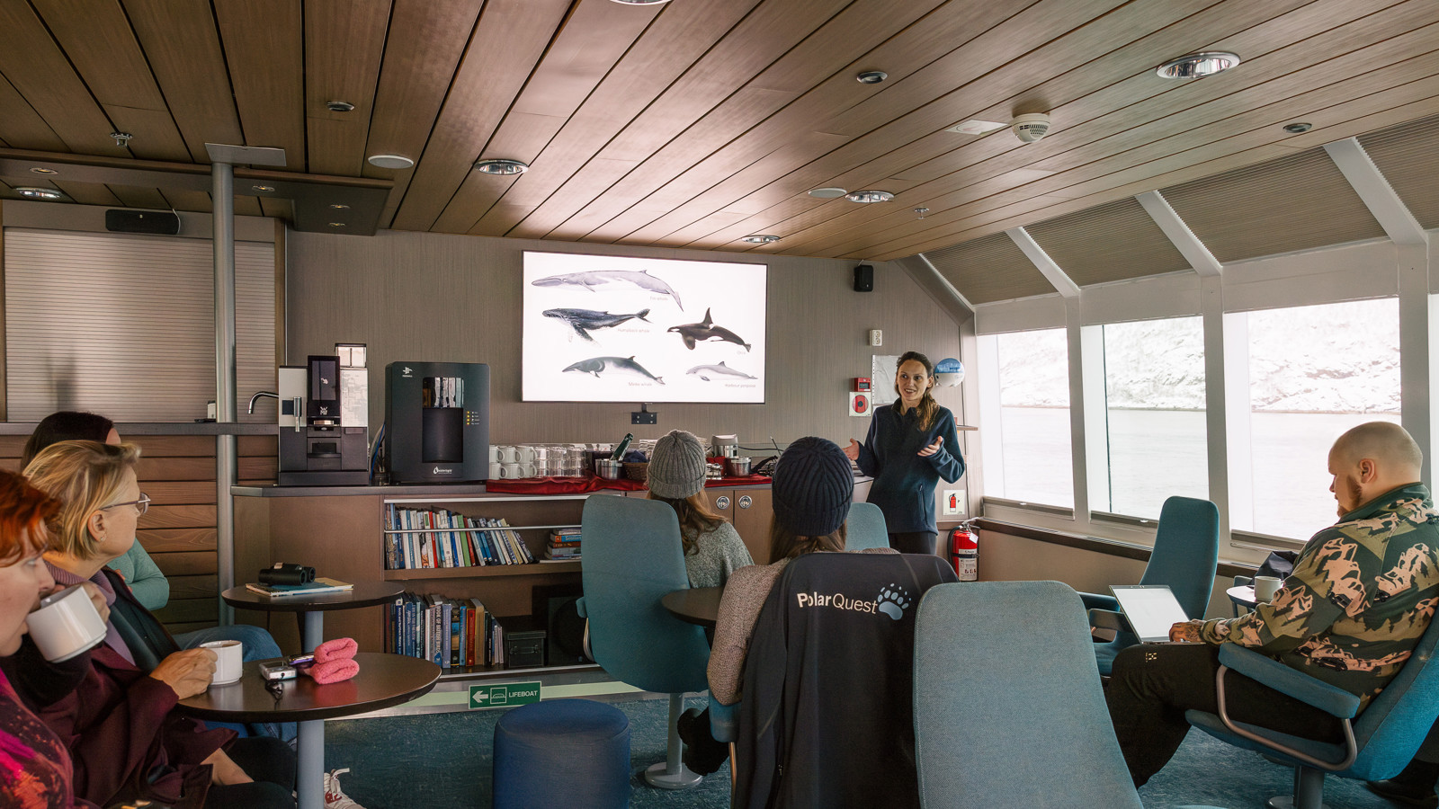 5With a maximum capacity of just 50 passengers, M/S Quest offers a truly unique scale for expedition cruising in Svalbard. She was built in Denmark in 1992 to serve as a ferry along the west coast of Greenland. In 2004-2005, it was completely refurbished into a comfortable expedition ship, and in 2018, the passenger areas underwent further renovation.