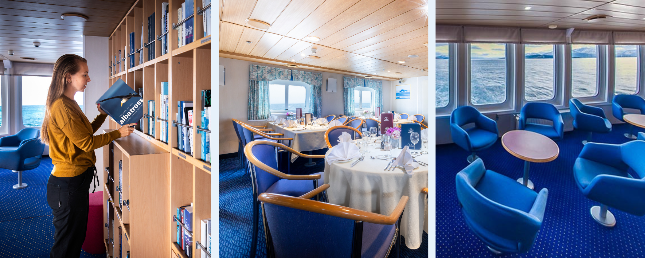 Ocean Nova offers a warm and friendly atmosphere, perfect for those seeking a relaxed and genuine expedition experience. Between excursions, you can unwind in the cosy library or the welcoming bar, or simply socialise with fellow travellers. Enjoy delicious meals in the dining room or gather in the lounge to listen to the guides’ engaging lectures. Travelling on a small expedition ship like Ocean Nova provides a completely different and more personal experience than a voyage on a larger, conventional cruise ship.