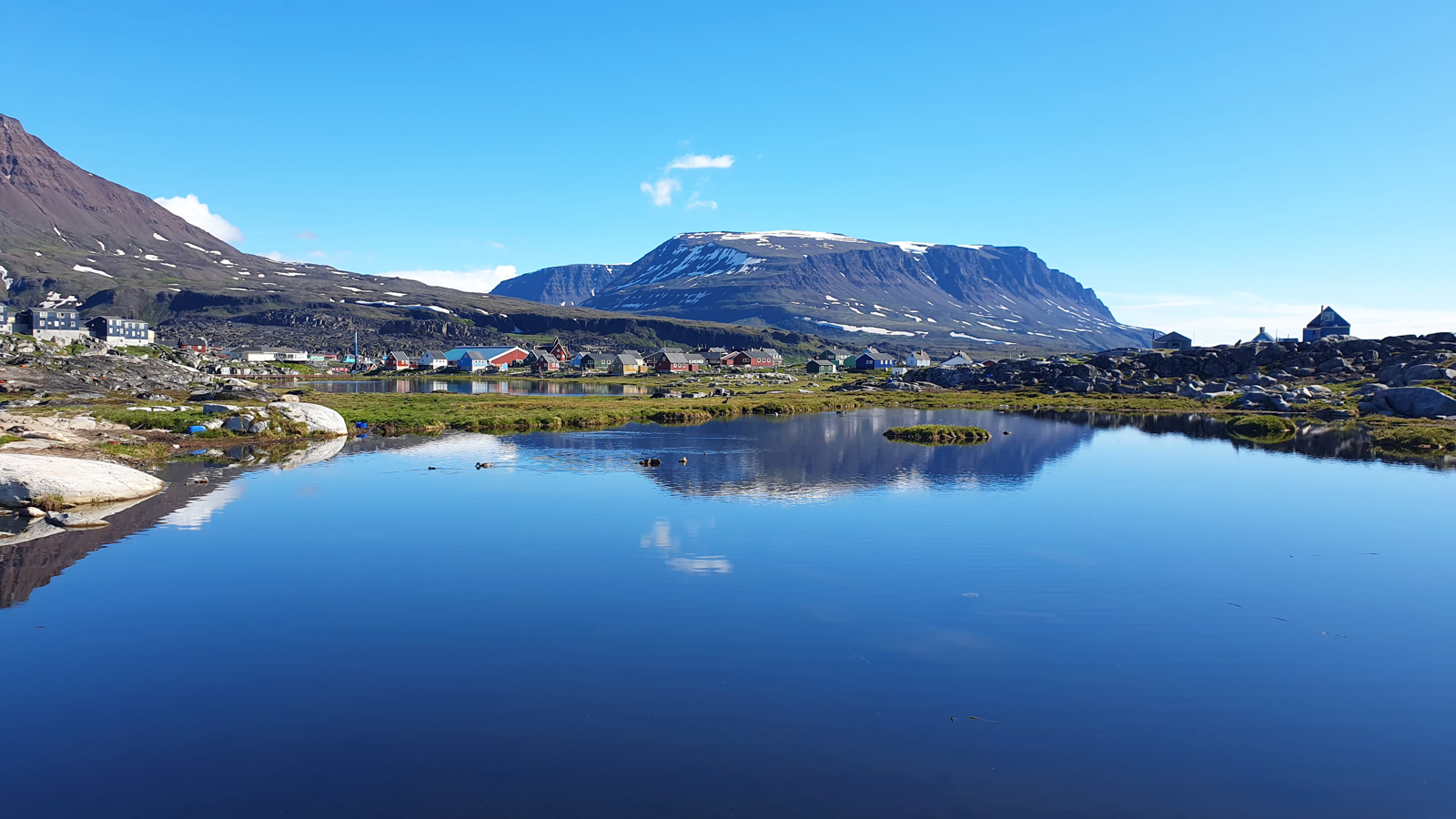 We pay a visit to Qeqertarsuaq – the settlement on the island – to explore the beautiful nature around the town and the colourful town itself.